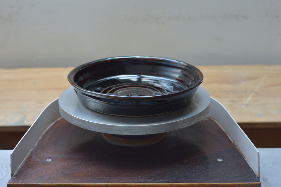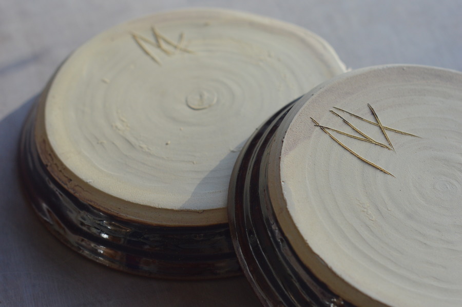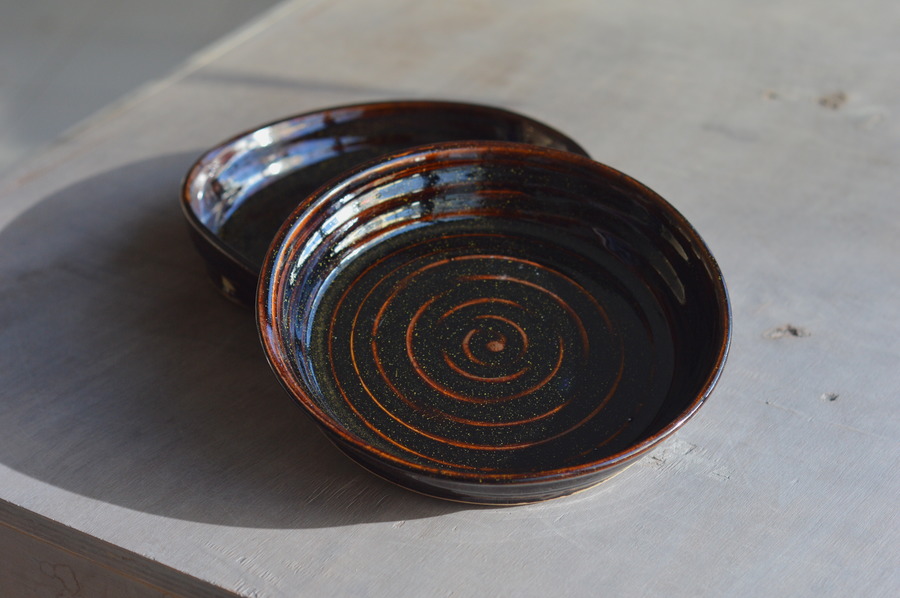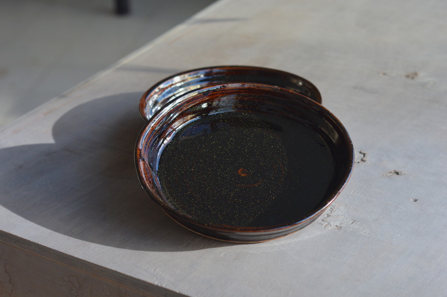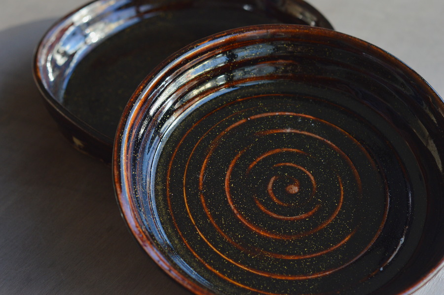 Tournage, Grès de Saint Amand en Puisaye, cuisson électrique. Émail « kaki » – noir/rouge de fer