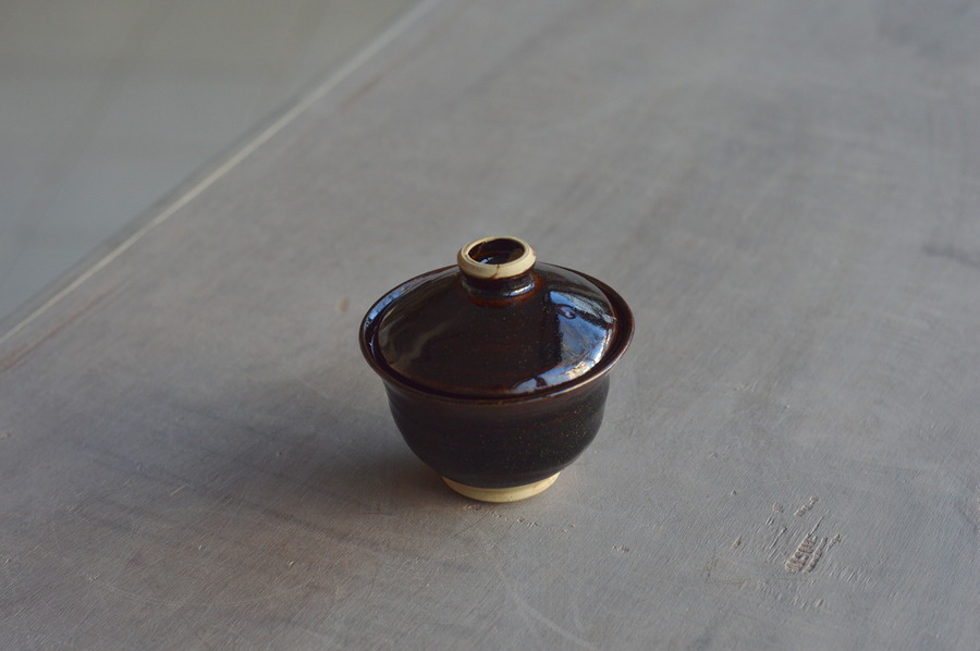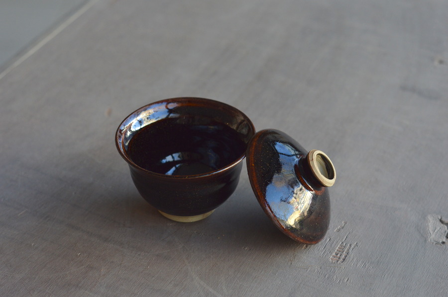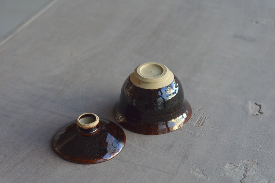 Tournage, Grès de Saint Amand en Puisaye, cuisson électrique. Email base « kaki », noir/rouge de fer