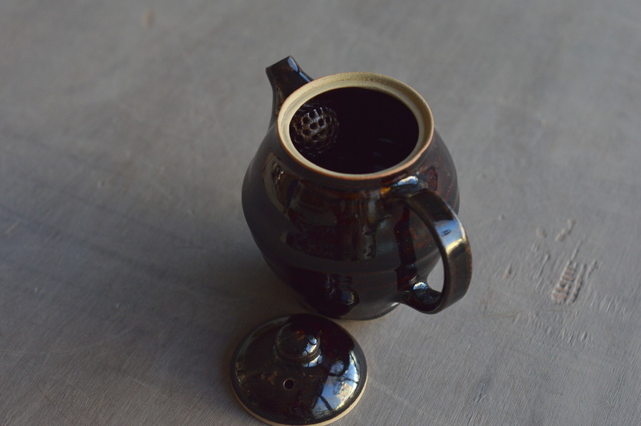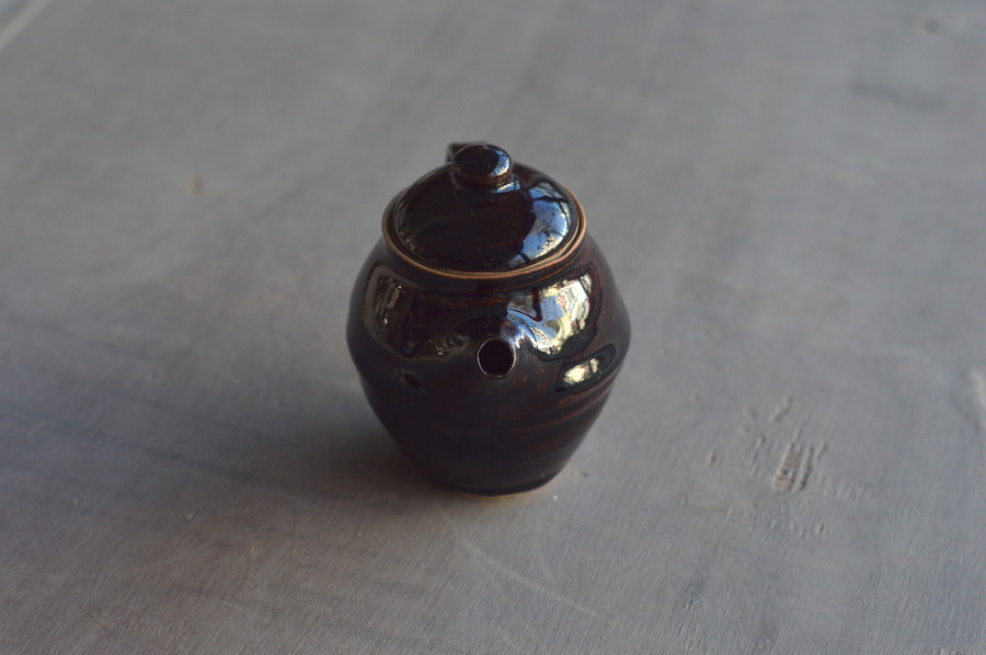 Grès de Saint Amand en Puisaye, émail traditionnel kaki : brun/rouge de fer.